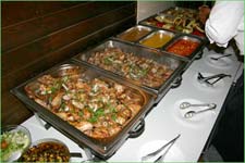 Kombination aus Hirsch (Preiselbeersoße), Entenbrust, Putenbrust, Hähnchenkeule, Rinderhackröllchen, Lachs, Garnelen, Lamm und Rind (Roastbeef) inkl. Salat = 28,00 Euro pro Person